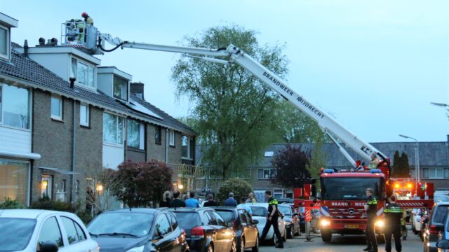 Uithoorn – Zondagavond ontstond er brand in een schoorsteen aan de Eedenlaan in Uithoorn. Brandweer Uithoorn heeft met hulp van de hoogwerker van brandweer Mijdrecht het vuur gedoofd en de schoorsteen geveegd. (foto Jan Uithol)