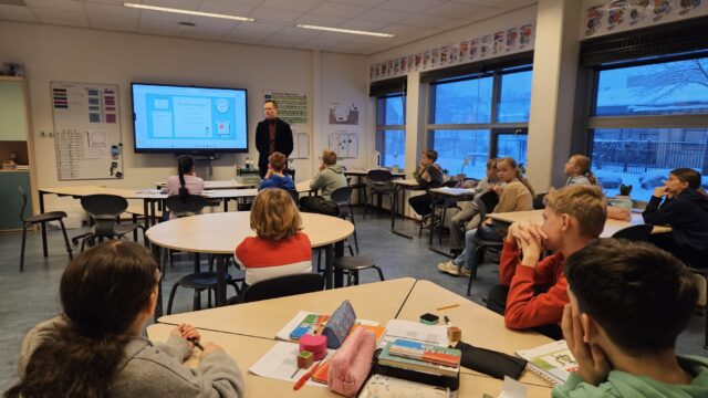 Foto: Wethouder Bart Kabout in de klas bij leerlingen van OBS Kudelstaart tijdens de start van de Tuinbouw Battle. Foto’s: Greenport Aalsmeer