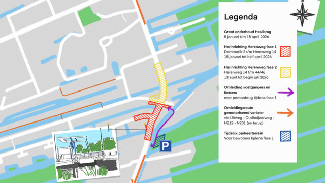 De Heulbrug is niet alleen een verkeersader, maar ook een toegangspoort voor recreatie en scheepvaart. Het onderhoud is noodzakelijk om storingen en veiligheidsrisico’s te voorkomen. Door de werkzaamheden aan de Herenweg te combineren met het brugproject, bespaart de gemeente tijd en kosten en wordt de overlast voor bewoners en weggebruikers zoveel mogelijk beperkt.