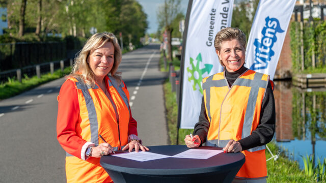 Vinkeveen – Drinkwaterbedrijf Vitens en gemeente De Ronde Venen gaan intensief samenwerken bij het vervangen van de drinkwaterleiding in de Baambrugse Zuwe. De 2 partijen hebben donderdag 18 april 2024 een overeenkomst getekend waarin ze de samenwerking formeel bekrachtigen. De partijen gaan gezamenlijk kijken waar de nieuwe leiding het best kan worden gelegd en of dit gezamenlijk met de eventuele reconstructie van de Baambrugse Zuwe kan worden uitgevoerd.