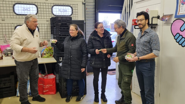 Uithoorn – Vrijdagochtend 16 januari bezochten CDA-kandidaten André Jansen, Willem Körnmann, Sander Bauer en Conny Vos de vrijwilligers van de stichting Help ons helpen 0297 om hen een hart onder de riem te steken. Ze lieten zich informeren en luisterden naar de verhalen en behoeften, voordat ze stroopwafels overhandigden aan de vrijwilligers die elke week weer hun mouwen opstropen.