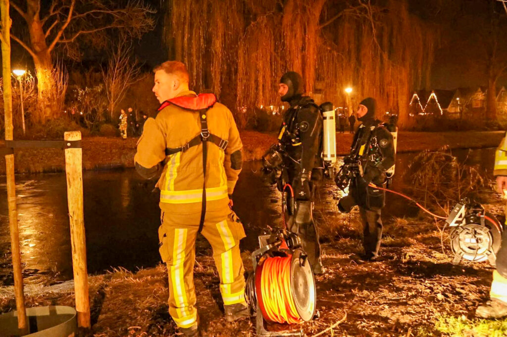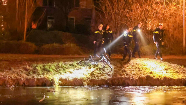 Kudelstaart – Zondag 28 december rond half negen in de avond is bij de Albrechtstraat in Kudelstaart een fiets aangetroffen langs de waterkant, vlak bij een wak in het ijs. Mede vanwege de vrieskou werd direct alles uit de kast gehaald en brandweer, duikers, twee ambulances, het traumateam (per auto in plaats van de helikopter) en meerdere politieauto’s stonden in no-time in de straat langs het brede water. Gelukkig werd alleen een fiets in het water aangetroffen en geen persoon!