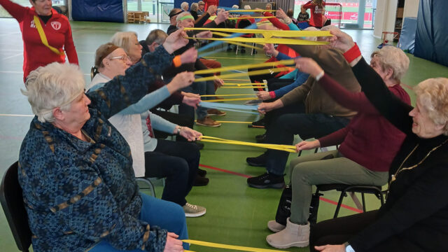 Onder begeleiding van toegewijde vrijwilligers van het centrum werd een speciaal aangepast programma afgewerkt. In vier groepen gingen de deelnemers aan de slag met activiteiten zoals zit-volleybal en jeu de boules. Of men nu zittend of staand meedeed, het draaide om de mogelijkheden van ieder individu. Vooral het spel met de parachute, waarbij gezamenlijk een bal hooggehouden moest worden, zorgde voor veel fanatisme en gelach.